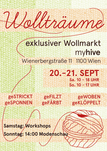 Vom Sa 20.9. bis So 21.9.2025 findet der exklusive Wollmarkt Wollträume im myhive in Wien statt, wo ihr mich gerne besuchen könnt! Ich freue mich auf euren Besuch!